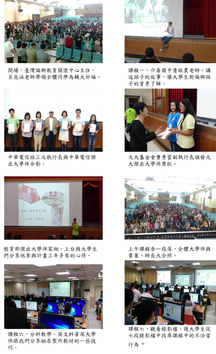 1. 協助大學伴進入教學實作與課程規劃,凝聚大學伴專業知能、教學熱忱與服務態度。