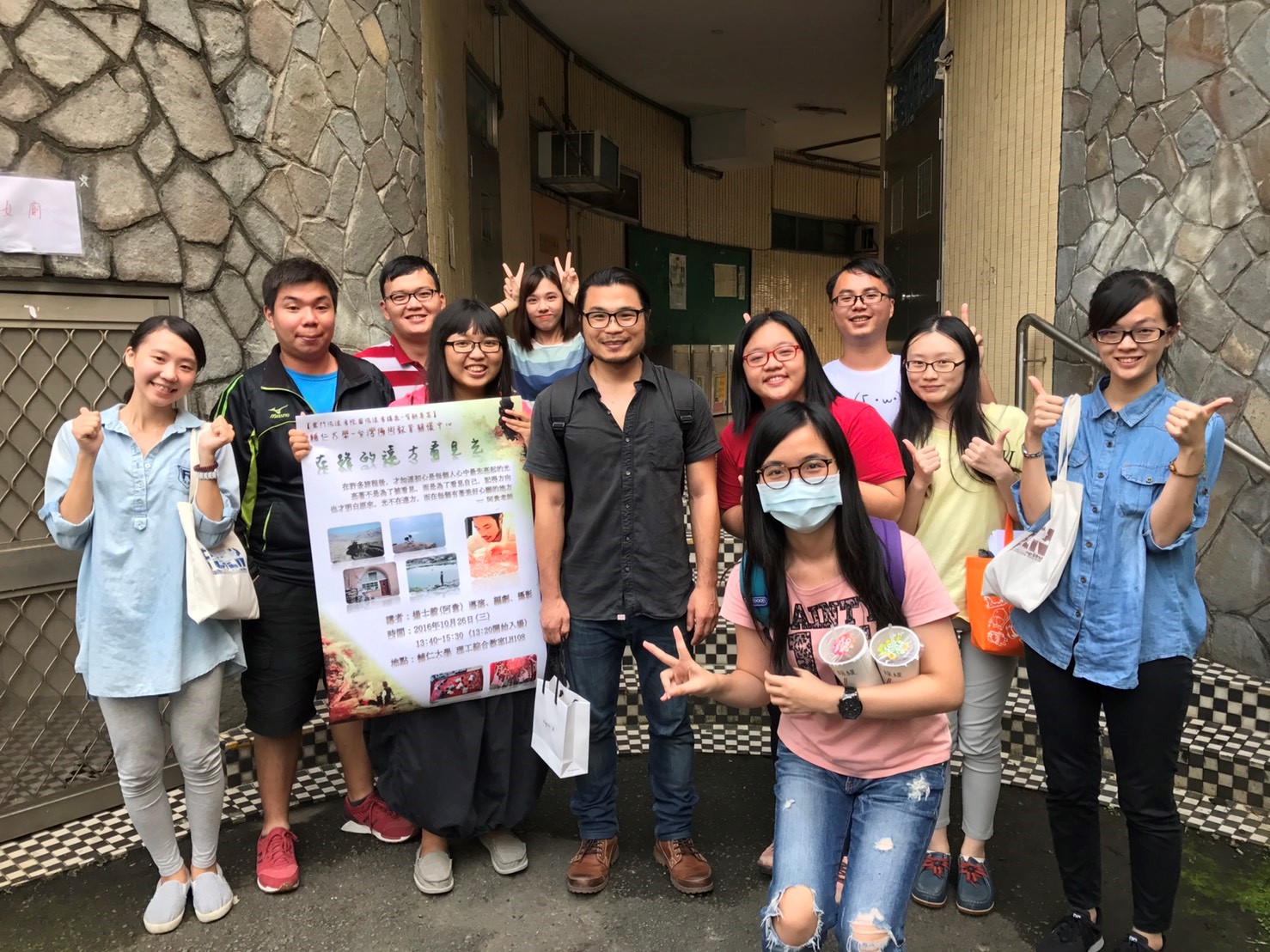 1. 呂慈涵主任開場致詞:說明林懷民老師發動「雲門流浪者計畫」的源起;施振榮先生贊助計畫與講座, 期許從臺灣走出去的年青人分享他們如何走出去;輔大偏鄉教育關懷中心理念與活動介紹;歡迎阿貴老師。