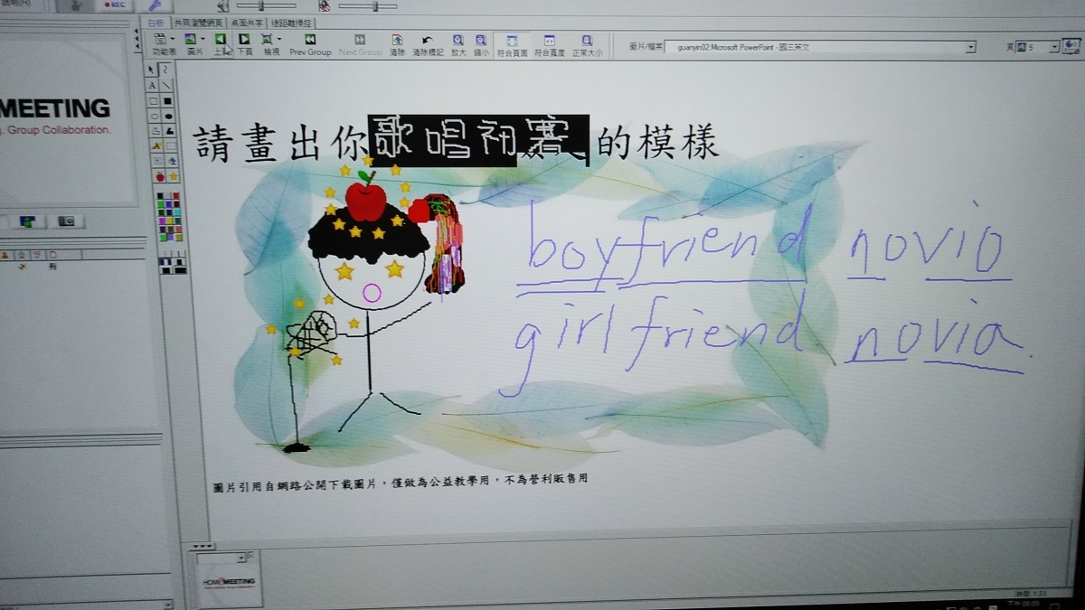 在後來的課程裡,因為小婕也喜歡寫故事,所以,我把內容設計成有故事性的遊戲,讓她藉由與角色的互動,一一解開題目。雖然,在這個部分,小婕常常被題目所挫折,她會想逃避但她很勇敢,她願意依靠自己的力量解決題目。慢慢地,小婕願意和我分享自己的感情故事,我才確實意識到,小婕果然還是個情竇初開的女孩。我很開心,小學伴願意把我視為朋友,視為姊姊,和我討論自己生活中遇到的問題或事情。然而,除此之外,我很開心小婕對於我所設計的課外知識,有所興趣,並因為我自己專業(西班牙文)的分享,讓她有稍微重拾學習語言的信心。