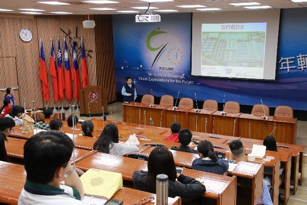 省思瓶裝水的可能後,講師借鑒新加坡的NEW WATER,利用科技力量,將汙水經過淨化等再造水工程,化為可使用的水,並在各大型會議中招待貴賓使用,擺脫以往僅能進口國外的水,嘗試自給自足,利用本地集水區、新生水、海水淡化,打造新興水資源與永續循環。同時,講師也分享目前台灣再生水的利用量與推動目標,使大家以不同面向看待水資源。