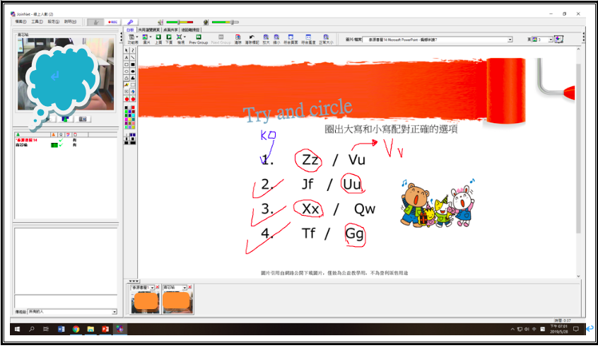 我是第一次接偏鄉伴讀,一開始就只是用當志工的心態來教教課、陪伴小孩,順便賺一點零用錢。但經歷了一學期的成長,我覺得妹妹帶給我的遠大於我給她的。妹妹讓我心思變得細膩,每個星期為妹妹做出專屬於她、獨一無二的教材,在課堂中會注意到她喜歡什麼、在意什麼,還要瞭解到她的心思、注意到她的心情起伏看表情。透過電腦螢幕接觸到在世界中某一個角落的小朋友,看似很近,也看似很遠。每個星期撥出一點時間,為她付出心力,這種感覺非常的不可思議!我還記得很有趣的童言童語