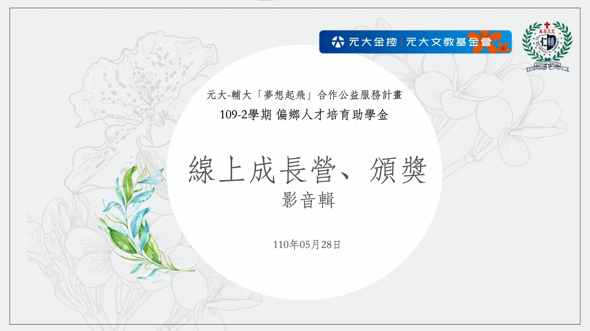 影片以「元大家人的溫馨叮嚀」作為開頭,以書信方式呈現元大文教基金會大家長-楊荊蓀執行長為各位元大寶寶們帶來的勤勉話語,鼓勵孩子 們一路以來的成長,也期盼大家可以平安的早日再次相聚。 接著邀請到代表輔仁大學偏鄉教育關懷中心的呂慈涵主任為同學們 進行勉勵與祝福。透過原定實體成長營安排之課程-「寶貝自己、善待自己」,提醒各位大寶寶把握疫情期間進行自我沉潛,重新發現自己與眾不 同的亮點。 師長致詞後,由助理宣達行政事項,講解助學金申請資料須注意事項 以及本學期成長營出席的異動規範,並且說明獎狀和領據的寄送辦法與注 意事項。 最後藉由回饋表單作為本次 109-2 學期偏鄉人才培育線上成長營參 與依據,透過表單檢視同學們是否確實觀賞影片,且已知日後本助學金之 申請須知。若繳交的表單內,關於申請須知的問答題作答錯誤,則視為無 效表單,需再次填寫至全數問題正確才可做為出席依據。
