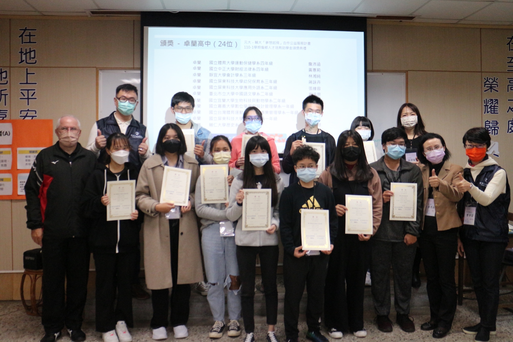 - 助學金頒獎典禮:邀請元大文教基金會及各校師長前來頒發110-1元大夢想起飛助學金,並邀請兩位孩子分享他們的現況。