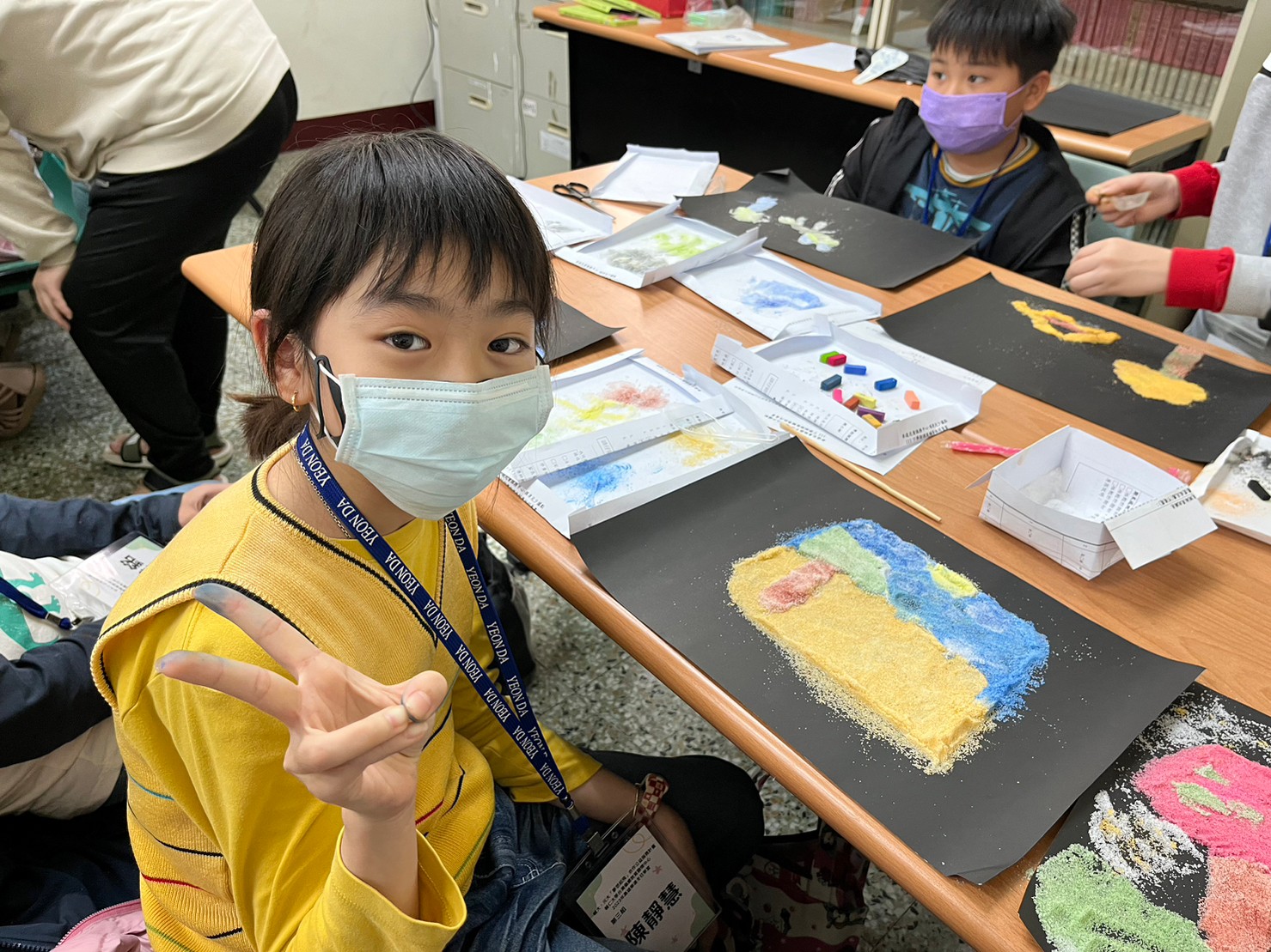 - 鹽色世界:利用鹽巴與粉彩筆,以沙化的概念畫出想像中美好的風景。