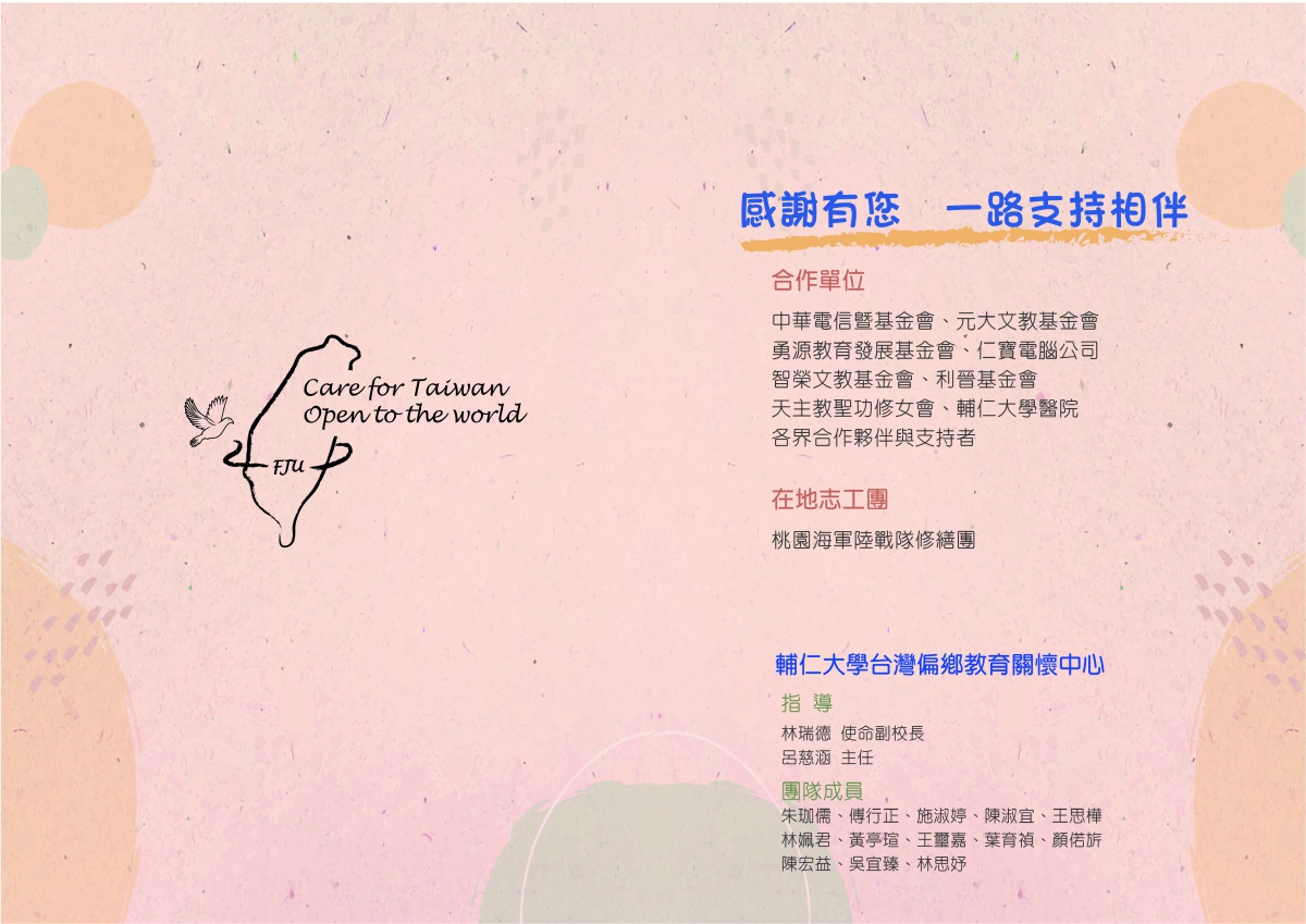 願我的存在 成為他人的祝福 把最好的 給最需要的 用生命陪伴生命 以生活教導生活