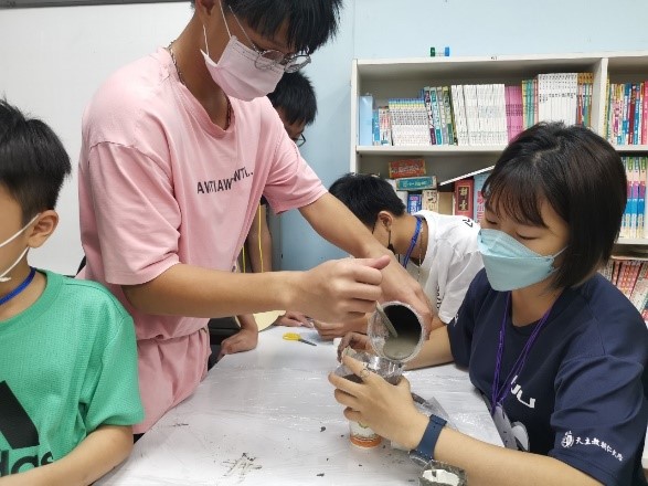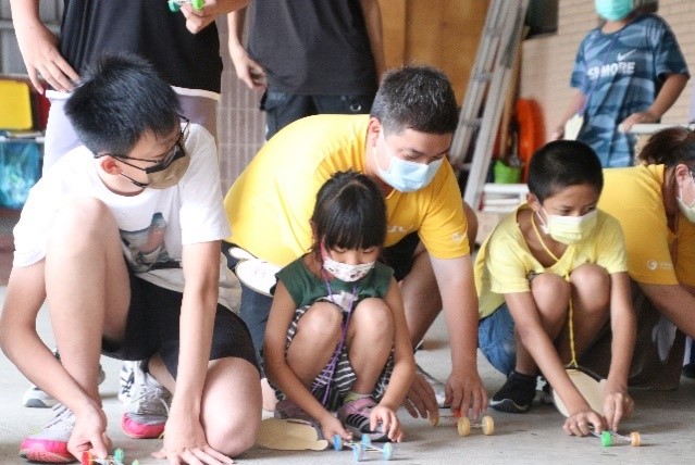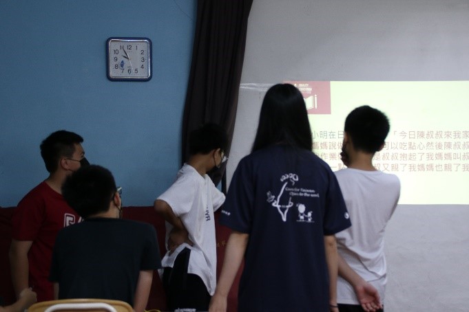 此外,在第一次主導整個課程時,因為有夥伴在身旁適時地給予協助,讓我對於上台主講課程不再那麼緊張,了解到如何在台上帶領孩子進入課程中。