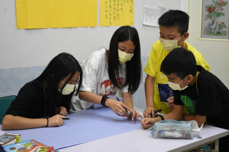 很開心經過好幾個月的籌備,營隊圓滿地結束了。這次的共伴計畫對我來說真的是很特別的體驗,很感謝在過程中幫助我們的所有人,不管是中華電信、偏鄉中心的助理/老師、社工等等,少了任何一方的協助,都無法讓活動順利進行。以前我從來沒想過自己有辦法勝任隊輔和老師的工作,這次的經驗也讓我更有信心去嘗試各種自己有興趣的事情。雖然之前參與過線上伴讀,但這是我第一次實地到偏鄉服務、也是第一次帶營隊,一開始還不太清楚該用什麼態度面對小朋友,也很擔心自己做得不好。不過後來我發現只要熟悉上台說話的感覺,讓自己投入課程活動,並且在遇到困難時,向隊友尋求幫助,有了幾次經驗之後,就會慢慢進步。