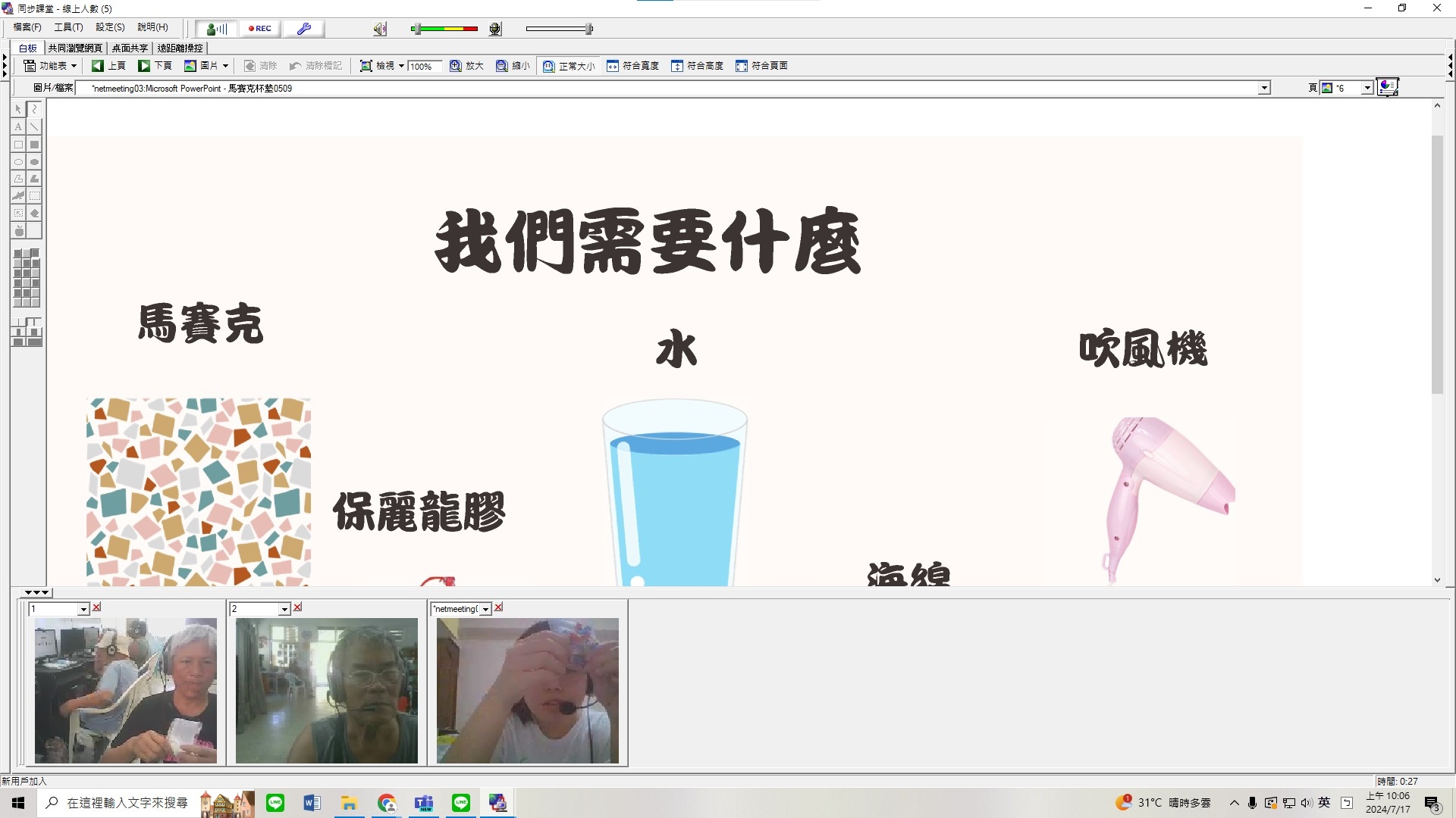 電腦網路的大當機確實造成手忙腳亂,但我們理解這並非任何人願意看到的情況。幸運的是,主控方提早進行與端點的試作測試,使我們能夠提前預防並減少影響。儘管長輩們較晚完成手作,但最終他們仍成功完成此次手作,並給予非常正面的回饋。
