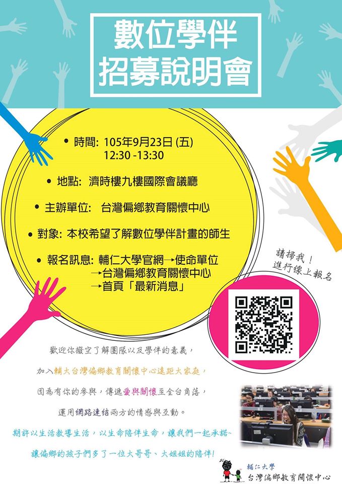 歡迎每位想對數位學伴有更深入了解或有興趣的同學報名參加喔!