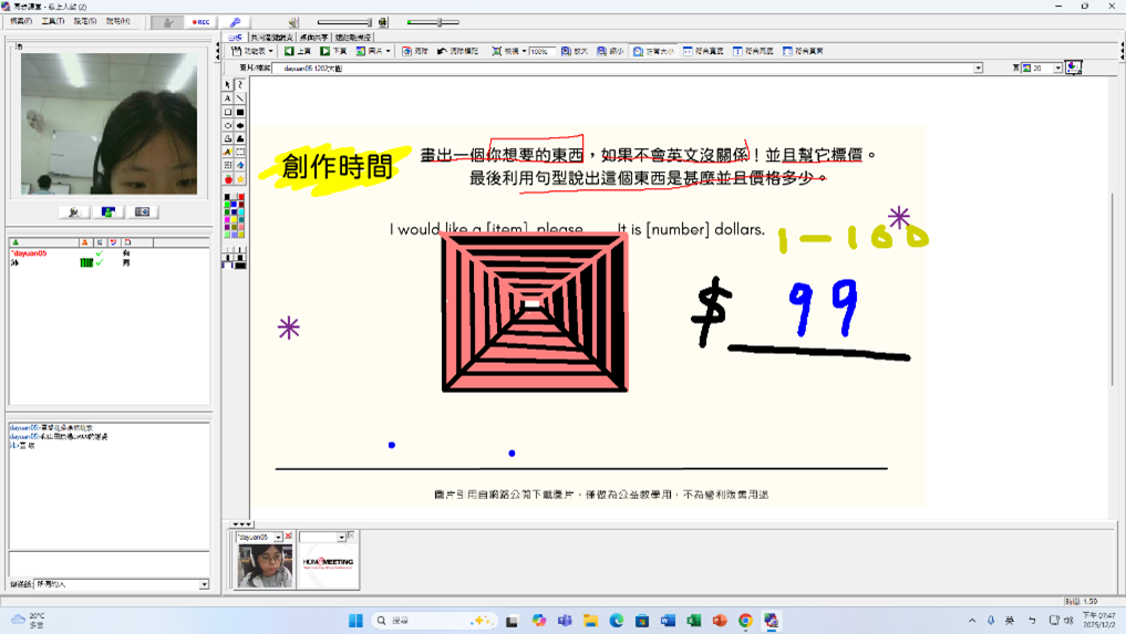 在教學過程中,最令我震撼的是○婕的學習態度。每當進入單字練習或需要記錄的環節,她總是會主動轉身去拿紙和筆,專注地將每一個字跡刻畫在紙上。這個小小的動作,對我而言卻是巨大的心靈衝擊。誠實地說,對於我自己不擅長的科目,我往往會選擇逃避甚至放棄,但○婕在這十週中,即便面對不熟悉的語言,卻始終保持著極大的熱情與積極。這份韌性,反而成了激勵我前行的力量,讓我在設計每一份簡報時,都希望能做到最好,以回應她的這份認真。