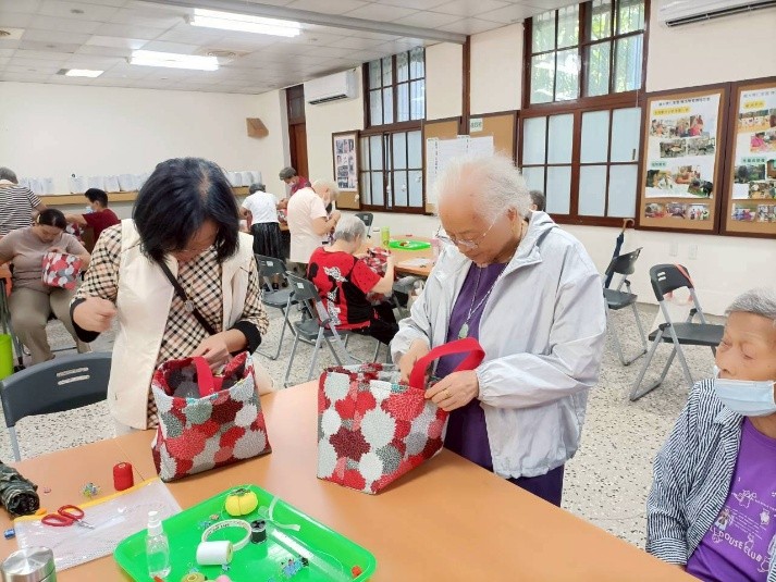 指導長輩進行兩件半成品的縫合與壓線,持續精進長輩們的手作技巧… 更多